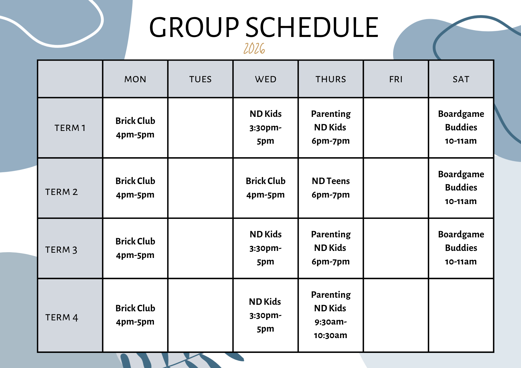 From identity-focused groups to playful social groups like Brick Club and Boardgame Buddies, each program is designed to help ND individuals feel seen, supported, and confident — without pressure or judgment.